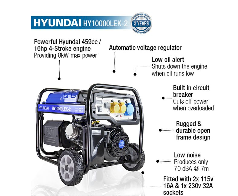 Hyundai HY10000LEK-2 8kW / 10kVA Petrol Generator