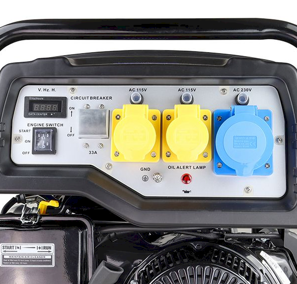 Fitted with 1x 230V 32A and 2x 115V 16A sockets, this generator offers flexible power supply options for multiple applications. The digital display meter shows hours run, voltage, and frequency, helping you stay on top of servicing.