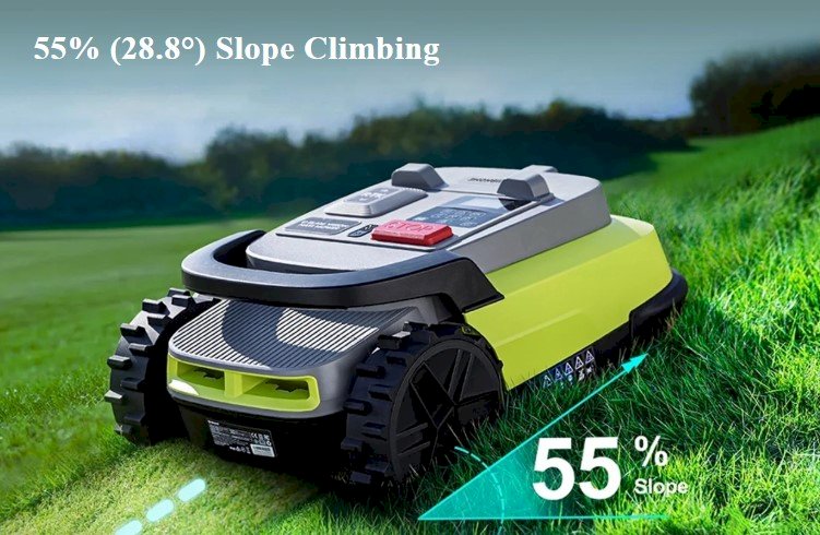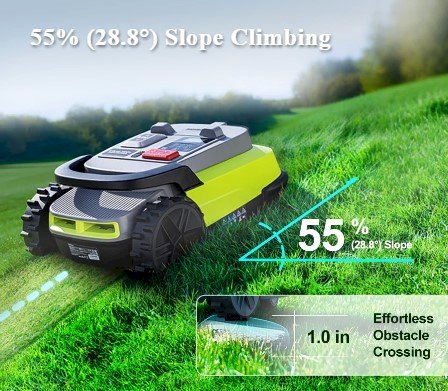 Handles Slopes up to 55% - Powerful traction allows the mower to operate on steep lawns and challenging terrain.