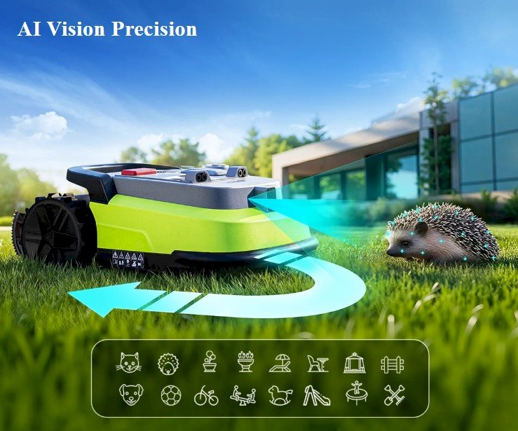 RTK + AI Vision Navigation - Advanced positioning technology provides 1–2 cm accuracy for precise and efficient mowing.