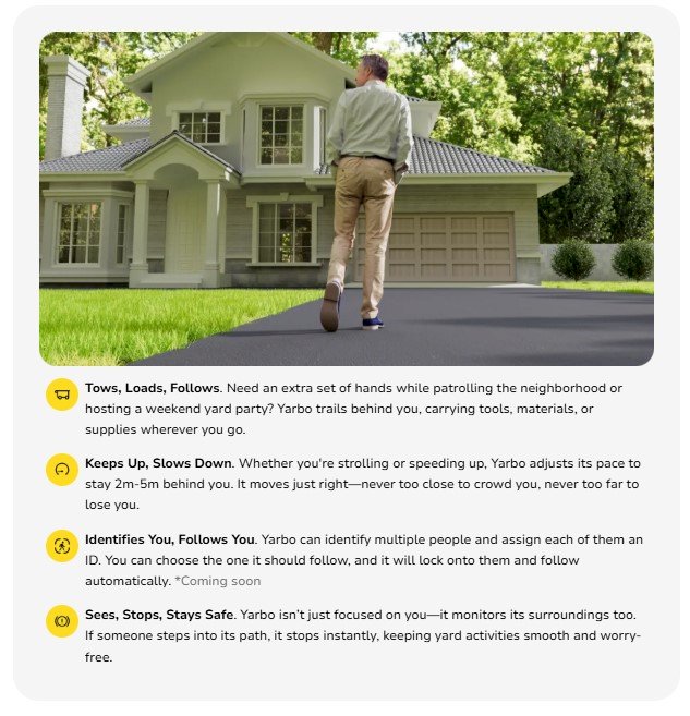 - Follow-Me Mode – Hands-free assistance that moves when you do
